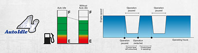 Save fuel with Kubota's Auto Idle. When the control levers are in neutral for more than 4 seconds, the engine RPM automatically idles. Move any control lever and the engine RPM immediately returns. This innovative feature reduces noise and exhaust emissions while reducing operating costs.