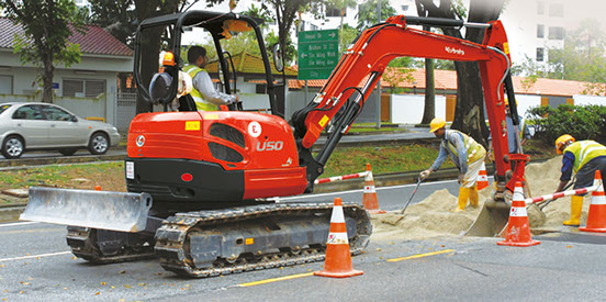 Kubota's zero-tail swing always keeps the tail of the mini excavator within track-width when swivelling, enabling operation in tight and confined spaces.