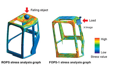 Stress analyses on ROPS (Roll Over Protective Structure) and FOPS (Falling