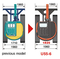 The enlarged cabin provides wider operator space which increases operator comfort. Especially, the wider foot space reduces operator stress during work.